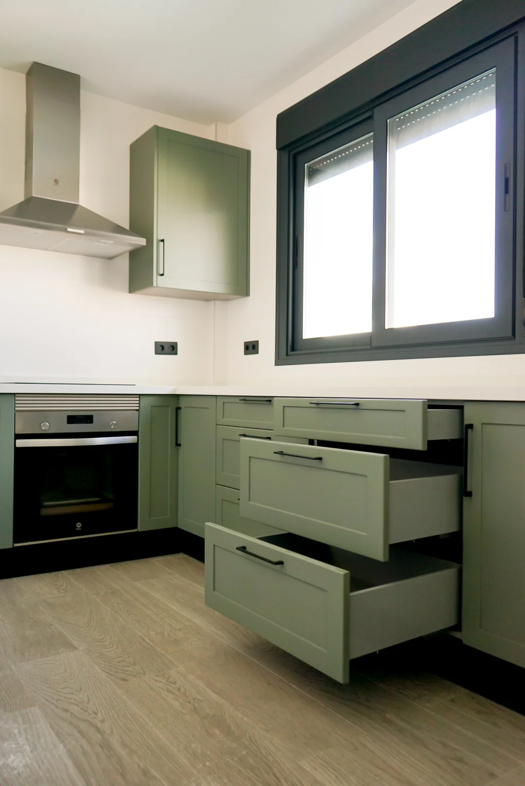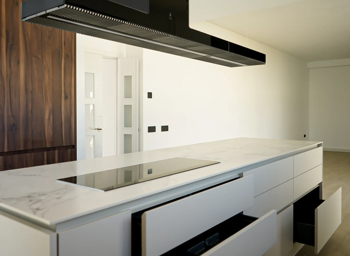 Cada uno de nuestros diseños de cocina se crea teniendo en cuenta tus necesidades y preferencias específicas. Si buscas una cocina abierta y espaciosa o una cocina más compacta y eficiente, tenemos la experiencia y los recursos para hacer realidad tu visión.
